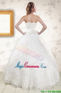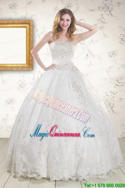 , 2015 Puffy Appliques Quinceanera Dress in White