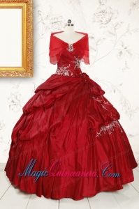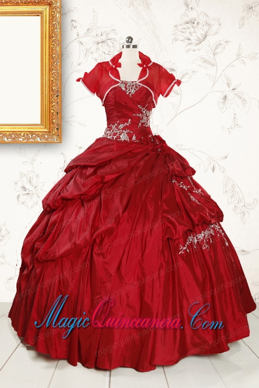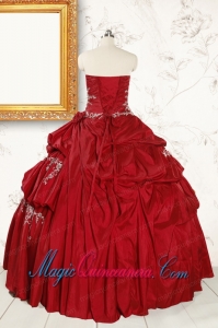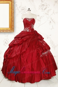 , 2015 Puffy Appliques Wine Red Remarkable Quinceanera Dresses