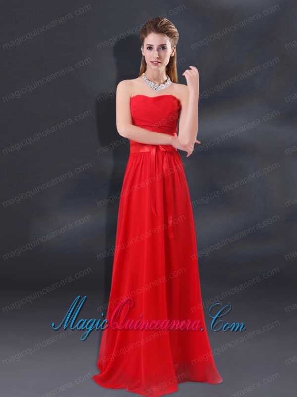 luxurious chiffon dama dress with ruching, 2015 Ruching Empire Dama Dresses with Belt