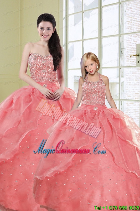 , 2015 Ruffles Watermelon Red Princesita Dress with Sequins