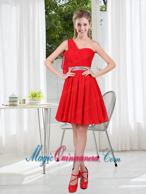 best pretty prom dresses for dama with mini length, 2015 The Most Popular One Shoulder A Line Dama Dresses with Ruching