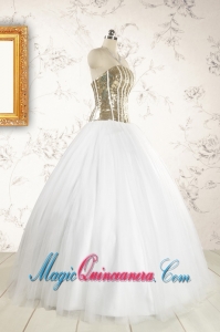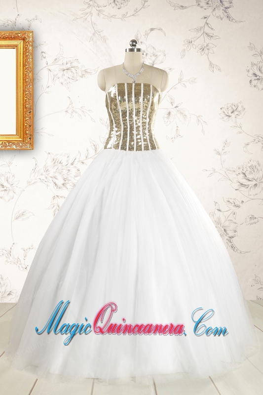 2015 The Super Hot Tulle Strapless Sequins White Quinceanera Dresses
