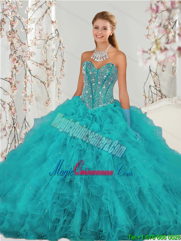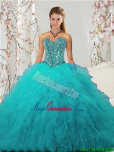 2015 Top Seller and Popular Beading and Ruffles Sweet 15 Dresses in Turquoise