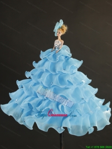classical organza turquoise quinceanera dress with nice ruffles,