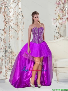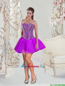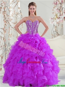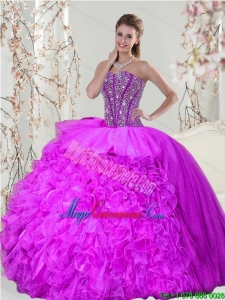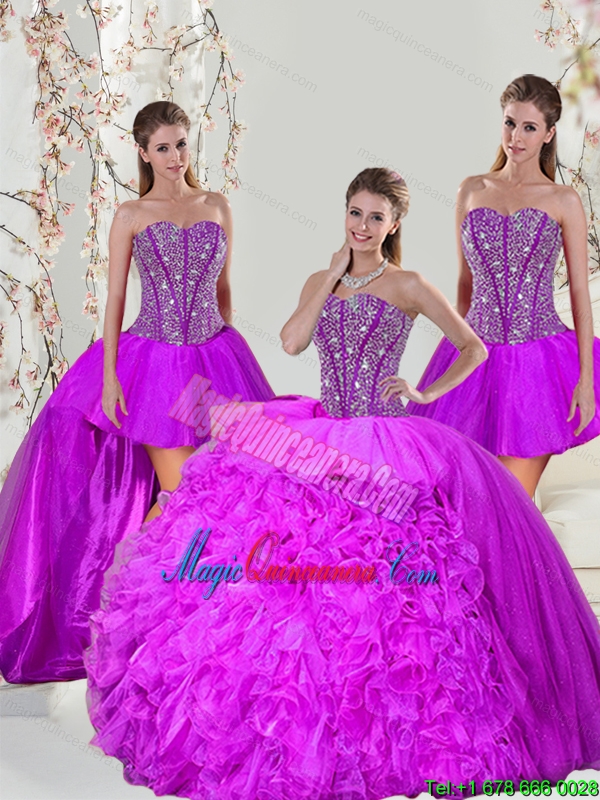 2015 Unique and Detachable Beading and Ruffles Fuchsia Sweet 16 Dresses