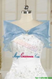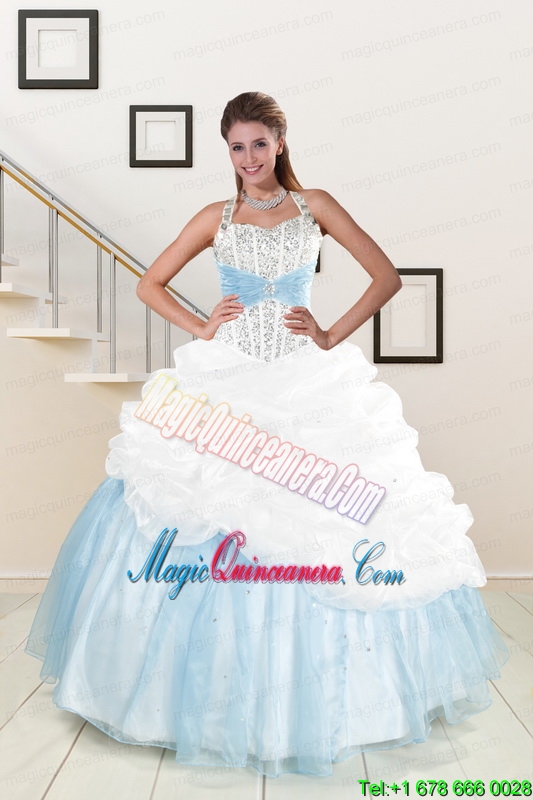 2015 White and Blue Ball Gown Quinceanera Dress with Halter