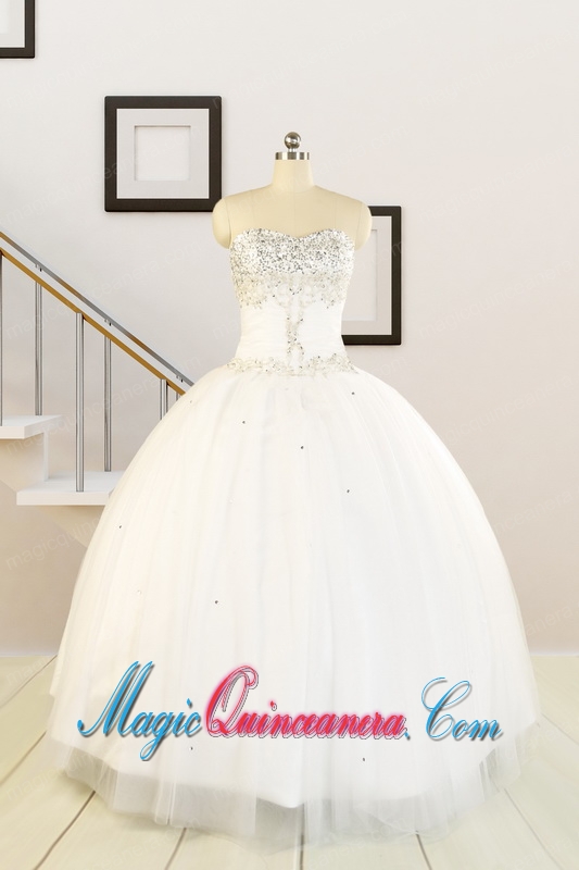 , 2015 White Elegant Quinceanera Dresses with Beading
