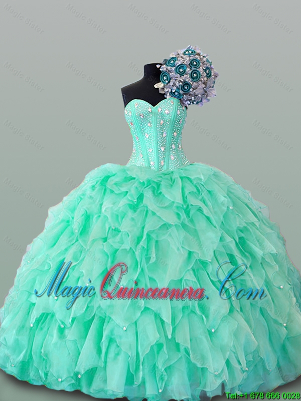 cute cheap organza quinceneara dresses in spring summer fall winter, 2015 Winter New Style Sweetheart Quinceanera Dresses with Beading and Ruffles