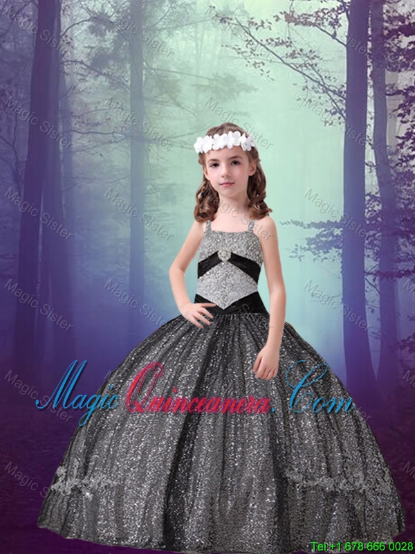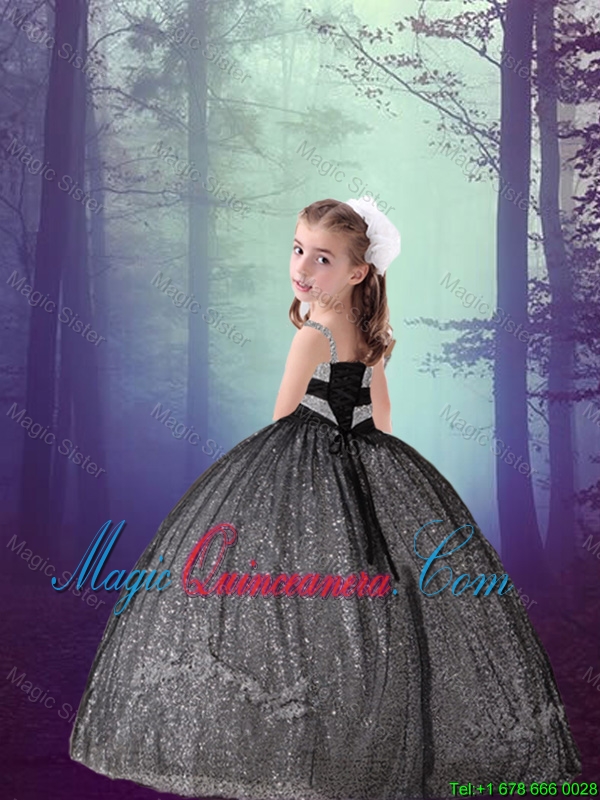 2015 Winter Pretty Straps Black Sequined Mini Quinceanera Dresses with Appliques