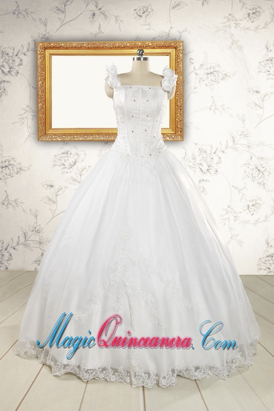 2015 Wonderful White Quinceanera Dresses with Appliques and Beading