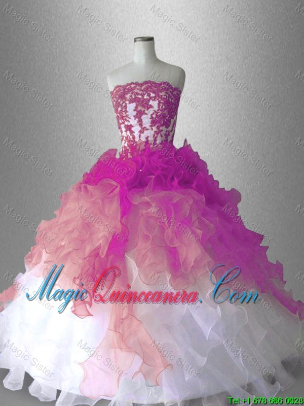 2016 Appliques Ball Gown Classical Sweet 16 Gowns with Ruffles