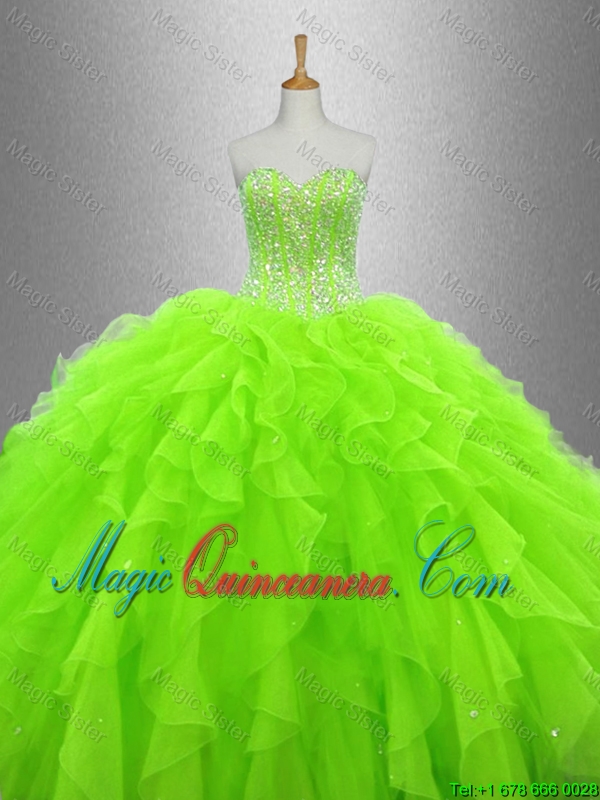 2016 Cheap Beaded and Ruffles Quinceanera Gowns in Organza