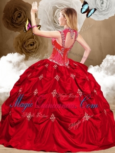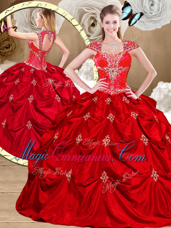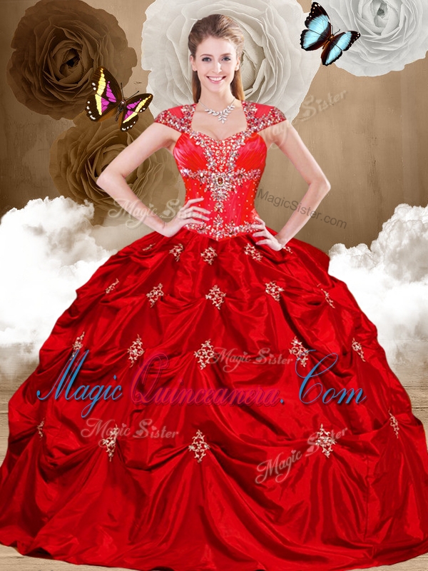 2016 Cute Red Sweet 16 Gowns with Appliques and Pick Ups