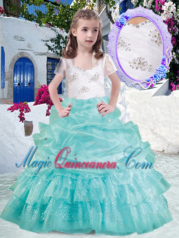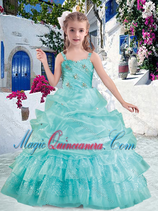 2016 Elegant Straps Ball Gown Little Girl Pageant Dresses with Beading and Bubles