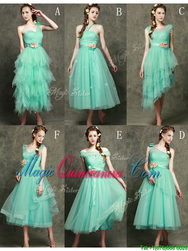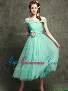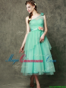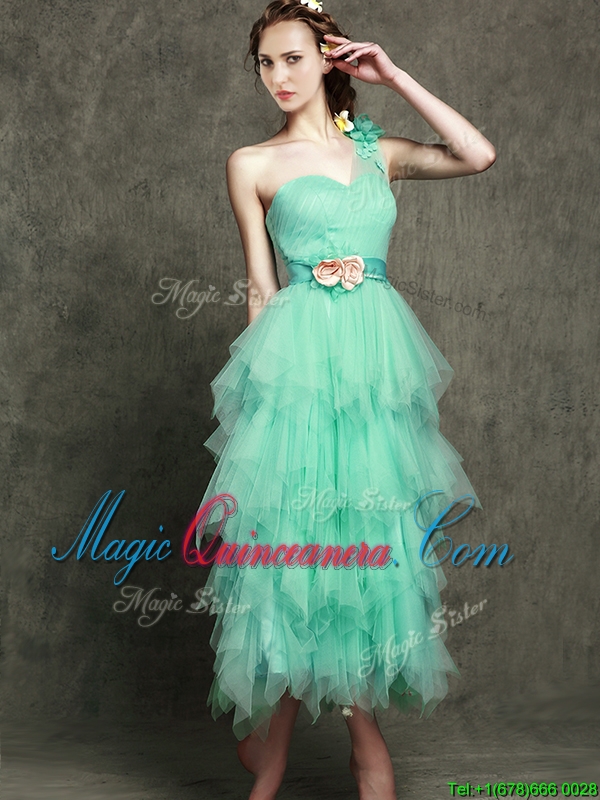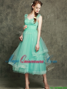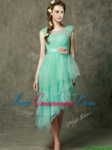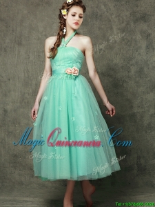 2016 Exclusive Hand Made Flowers Ankle Length Dama Dress in Apple Green