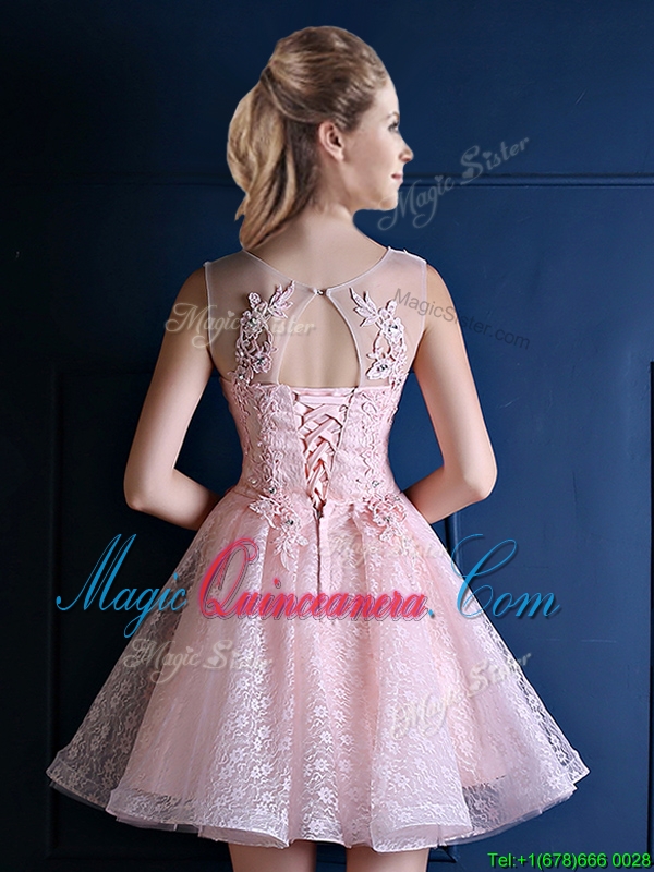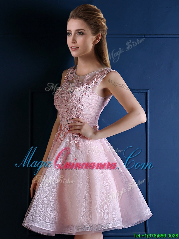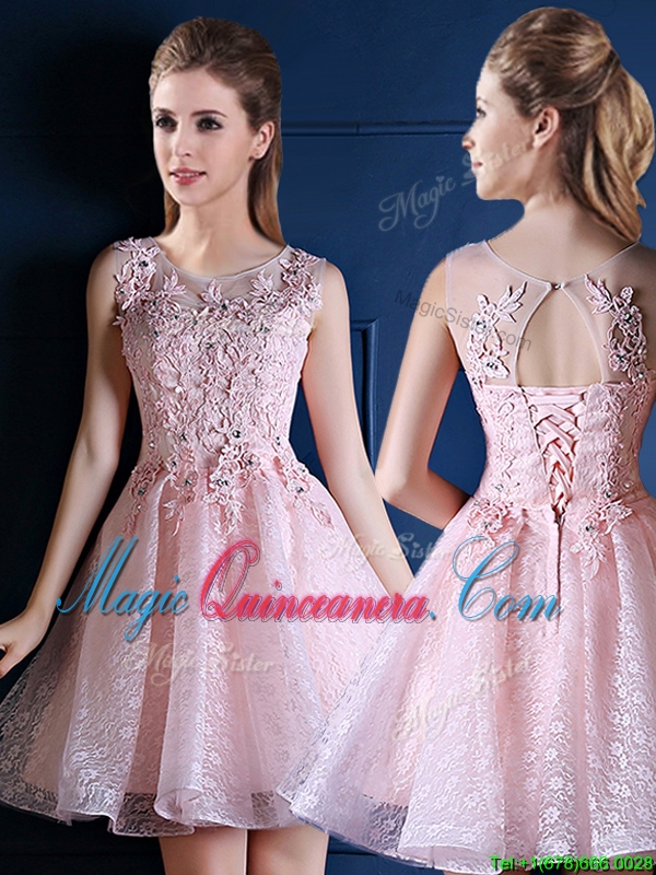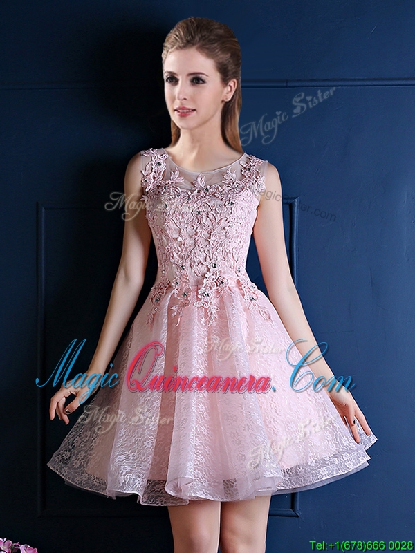 2016 Exquisite Baby Pink Scoop Dama Dress with Appliques and Beading