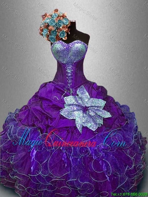 websites for flowy quinceanera dress, 2016 New Arrivals Sequined Purple Sweet 16 Gowns with Ruffles