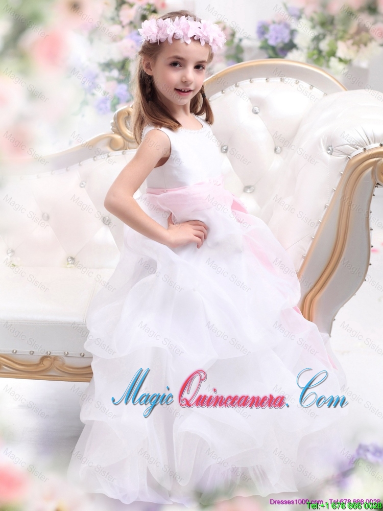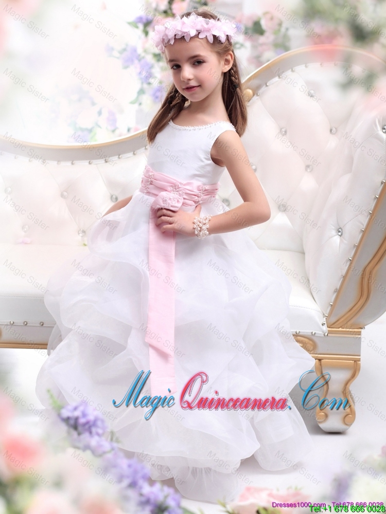2016 Spring Pretty Scoop White Little Girl Pageant Dresses with Sash and Ruffles