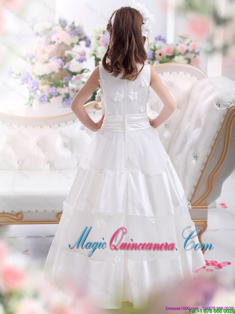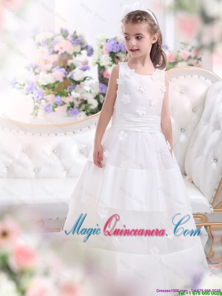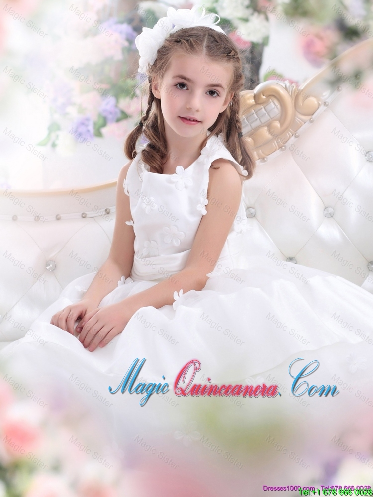2016 Summer Discount White Scoop Little Girl Pageant Dresses with Appliques
