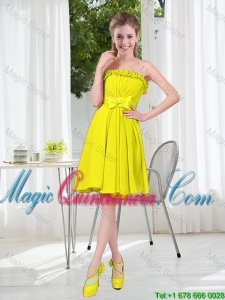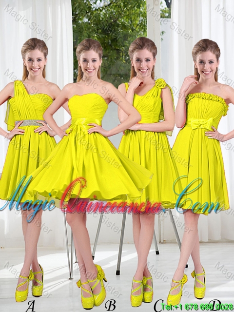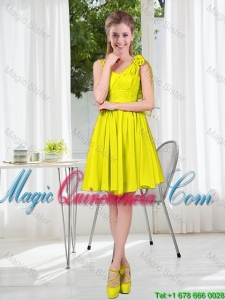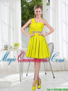2016 Summer Simple One Shoulder Dama maid Dresses in Yellow Green
