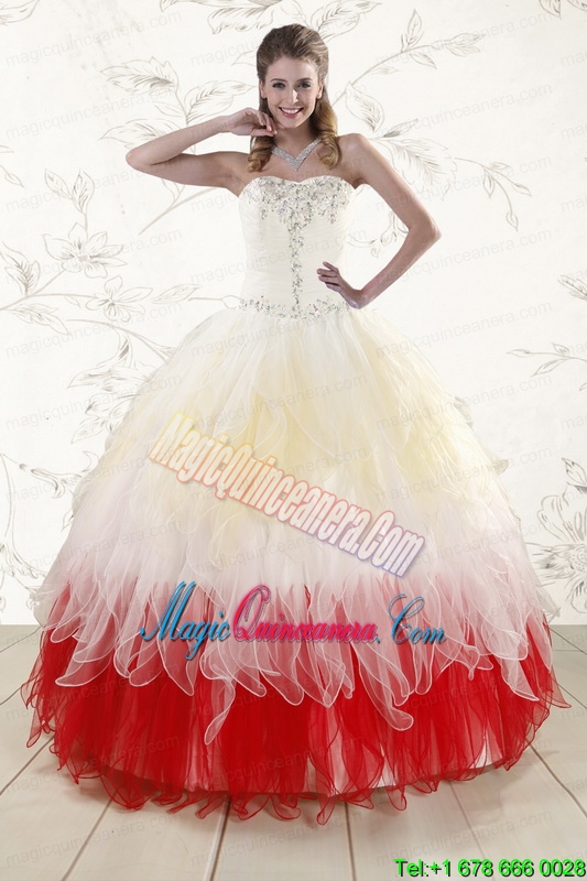 2016 Unique Multi Color Sweetheart Ruffled Quinceanera Dresses wth Beading