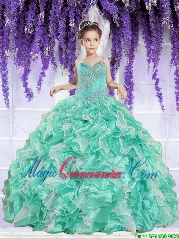 2016 Winter Perfect Ruffles and Beaded Decorate Little Girl Pageant Dress in Apple Green - Magic Quinceanera