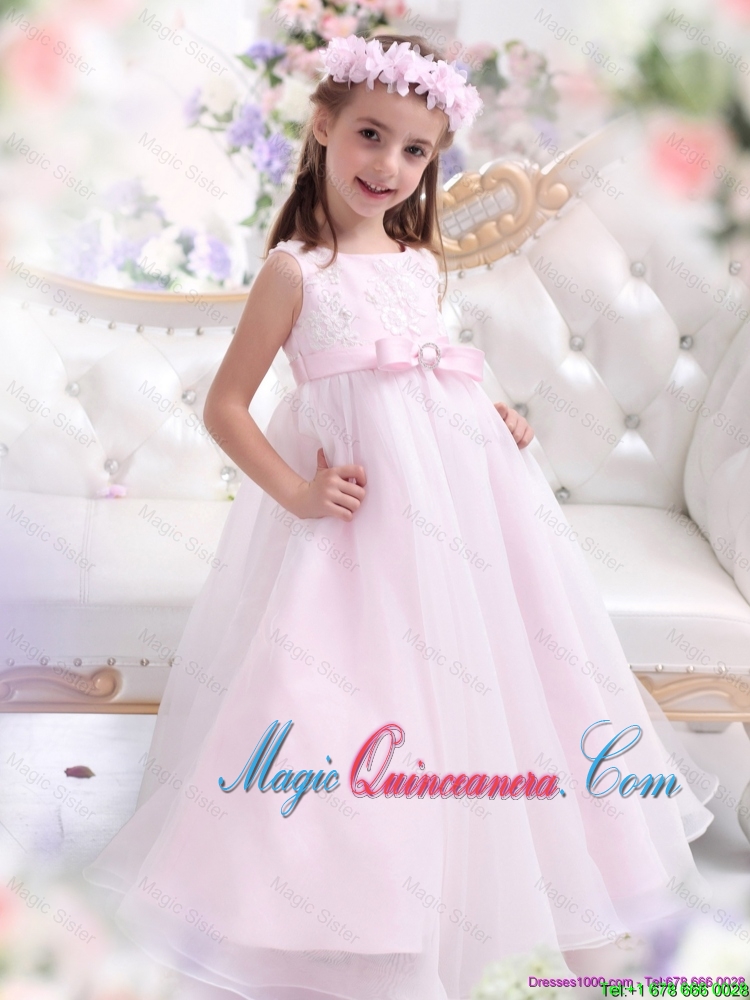 2016 Winter Perfect Scoop Appliques and Bownot Little Girl Pageant Dresses in Baby Pink