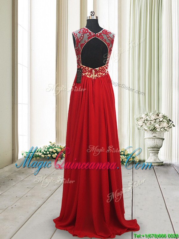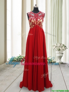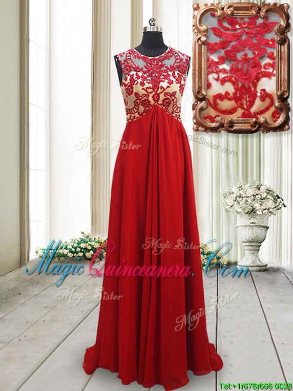 , 2017 New Arrivals Applique Scoop Brush Train Red Dama Dress with Open Back