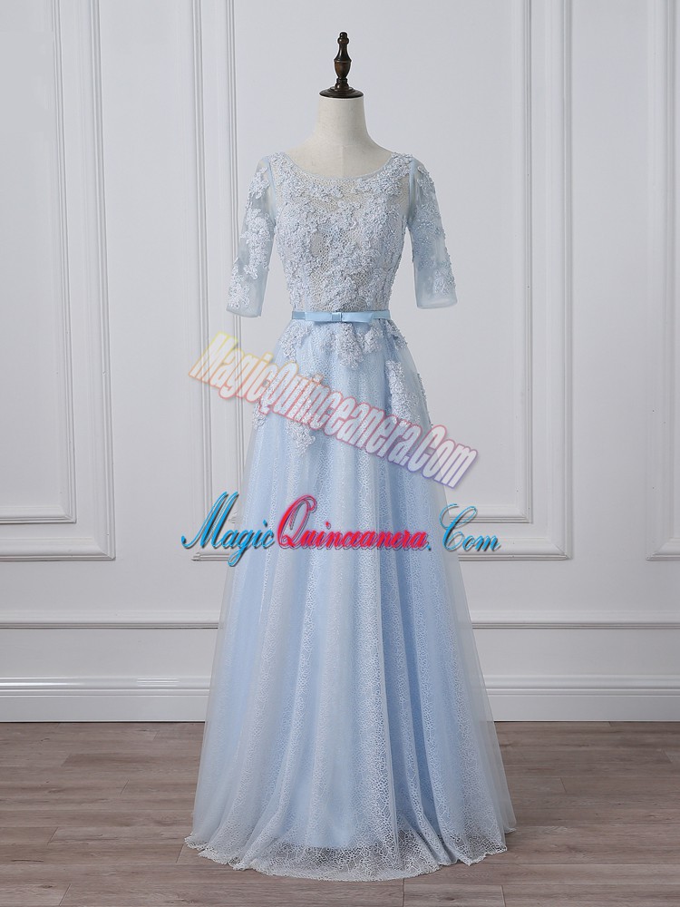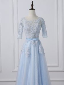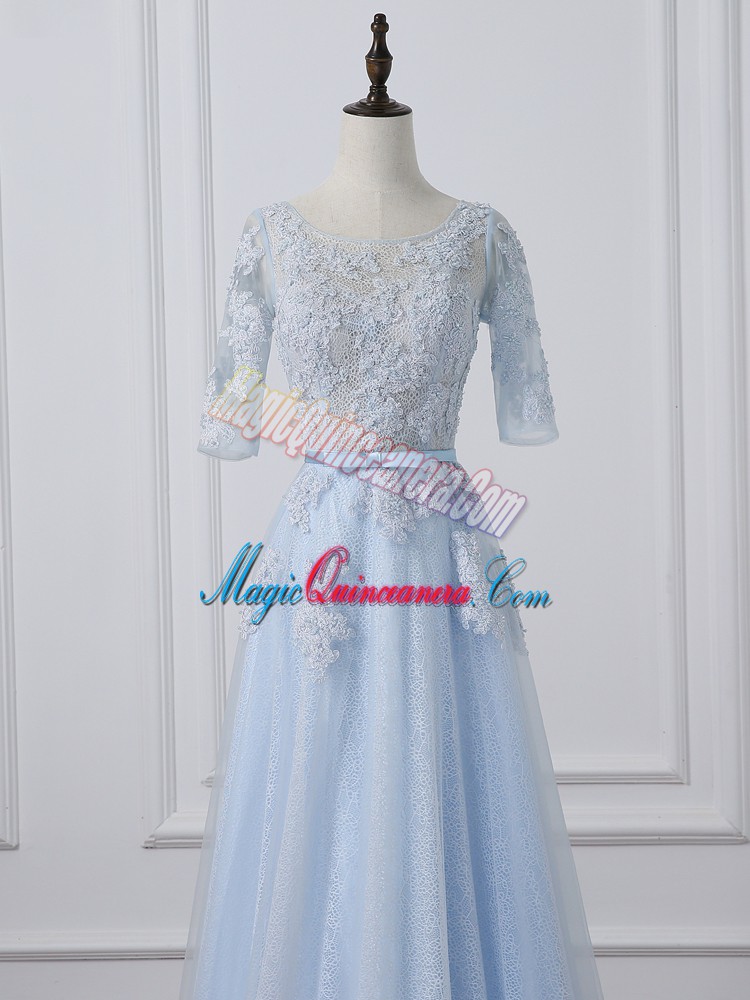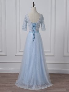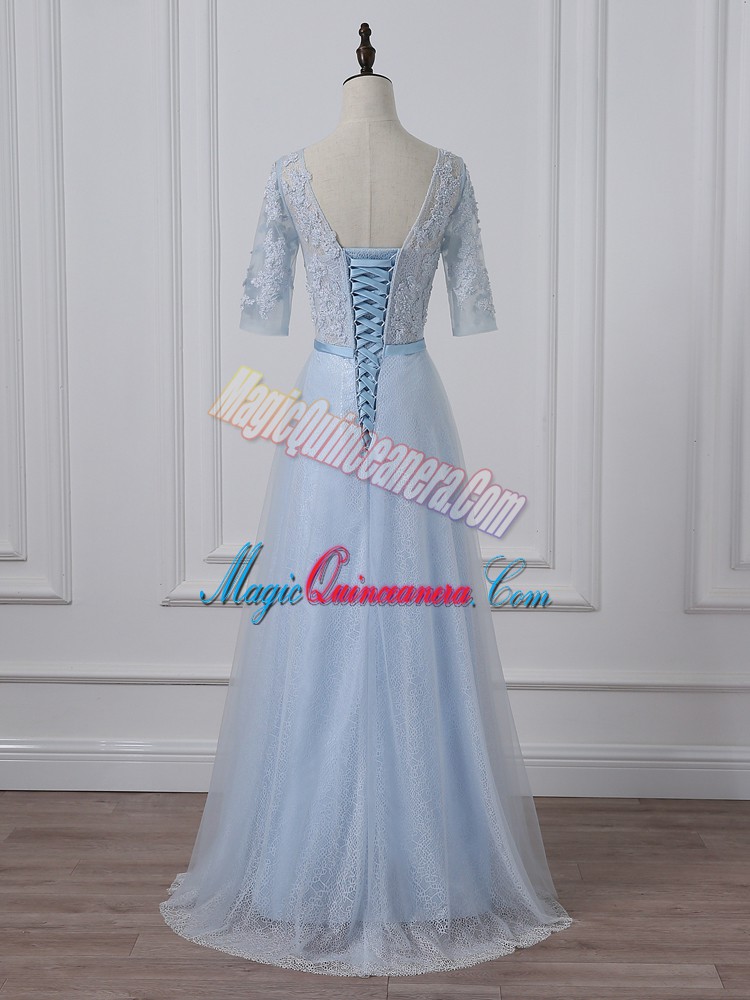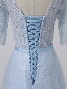 3 4 Length Sleeve Beading and Lace and Appliques Lace Up Mother of the Bride Dress
