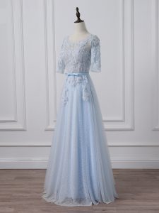 , 3 4 Length Sleeve Beading and Lace and Appliques Lace Up Mother of the Bride Dress