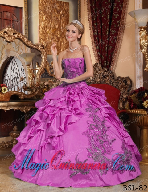 A Fuchsia Ball Gown Strapless With Floor-length Taffeta Appliques Classic Quinceanera Gowns
