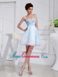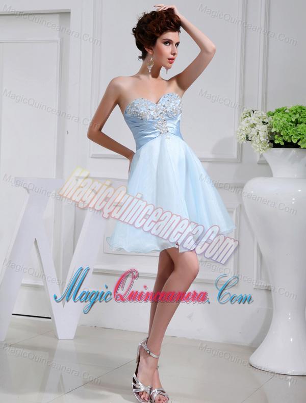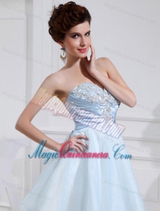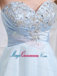 A-line Chiffon Aqqliques Strapless Light Blue Sweatheart Dama Dresses