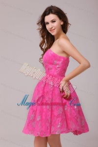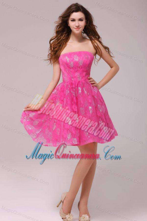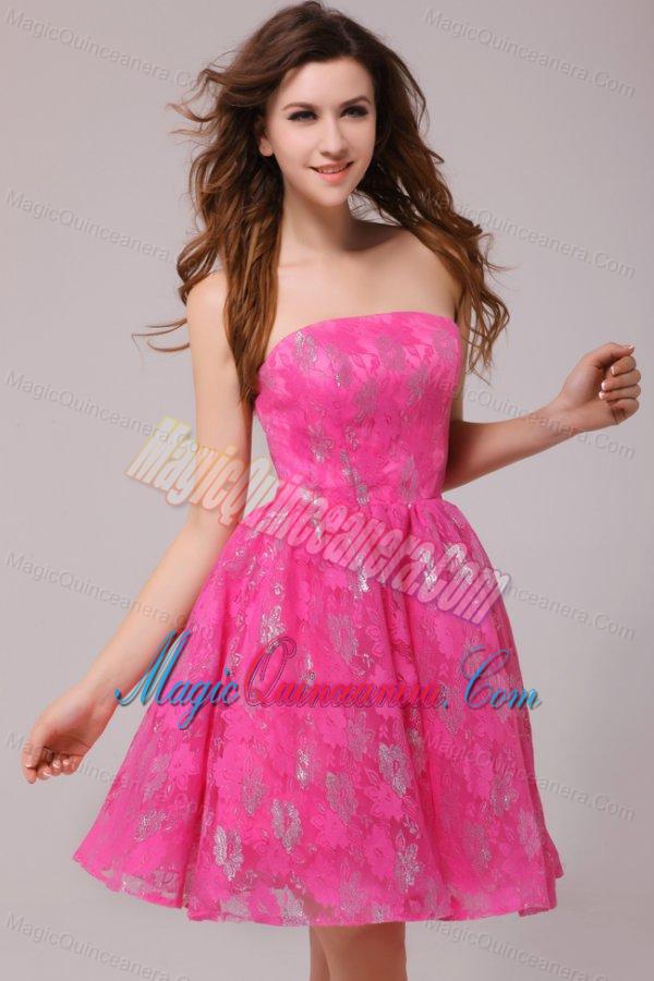 A-line Hot Pink Strapless Knee-length Dresses for Dama