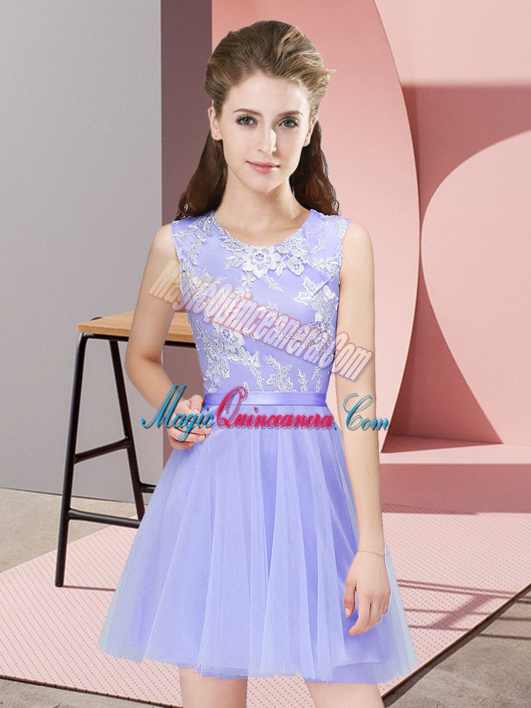 A-line Quinceanera Dama Dress Lavender Scoop Tulle Sleeveless Mini Length Side Zipper