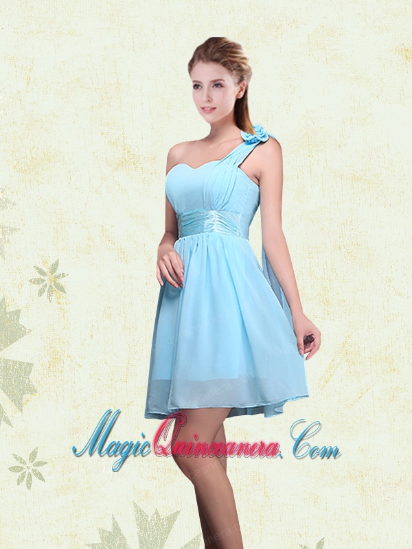 one shoulder chiffon 15 dresses for damas for 2015, A Line Ruching Chiffon Dama Dresses with One Shoulder