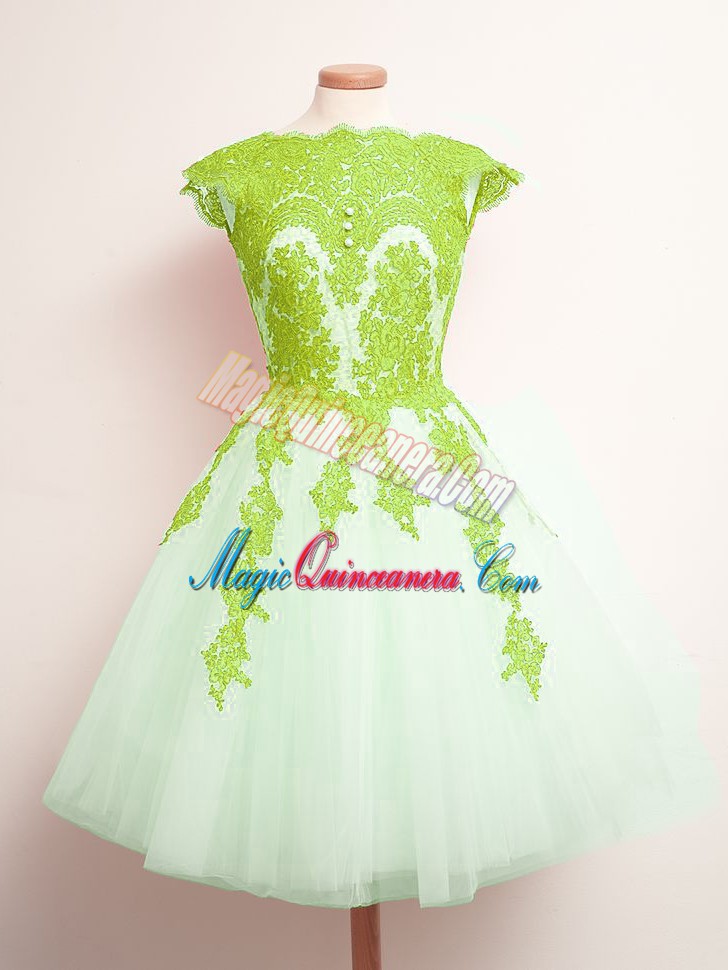 , A-line Scalloped Sleeveless Tulle Mini Length Lace Up Appliques Vestidos de Damas