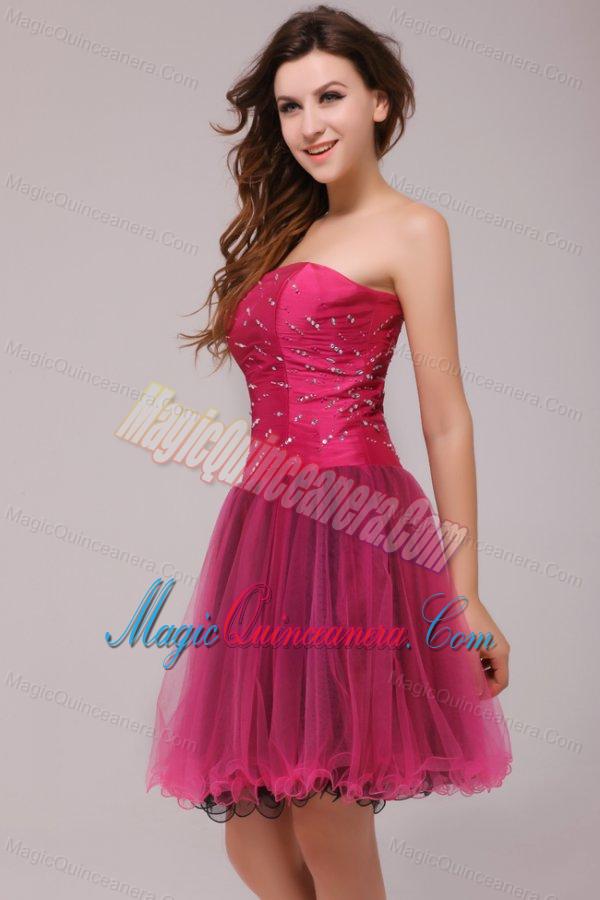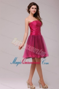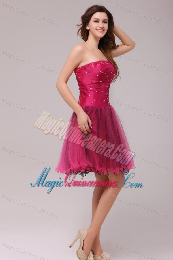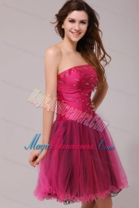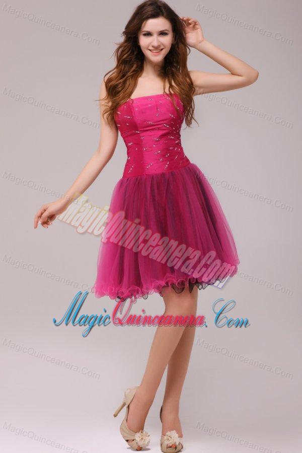 A-line Strapless Beading Organza Fuchsia Dama Dresses