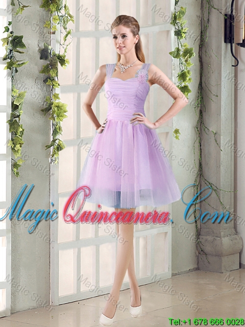 A Line Straps Ruching Dama Dresses with Hand Made Flowers