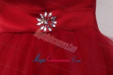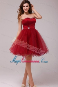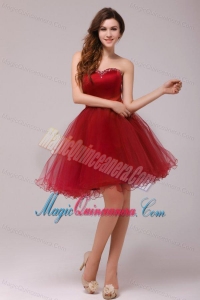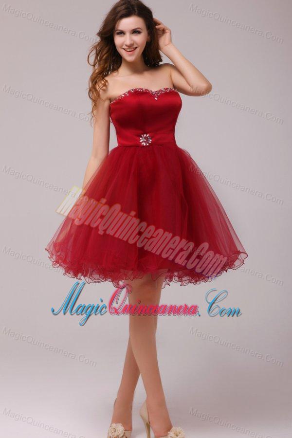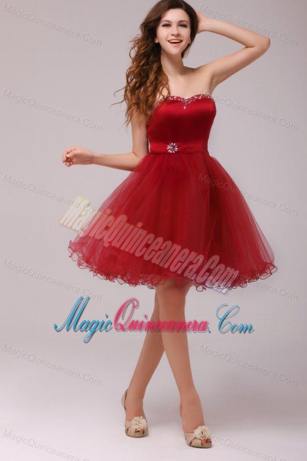 A-line Wine Red Sweetheart Beading Knee-length Dama Dresses