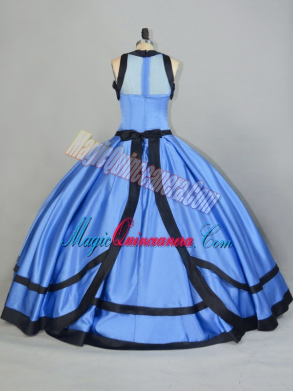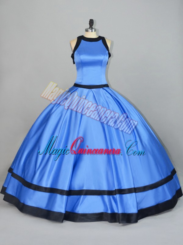 Admirable Blue Satin Lace Up Scoop Sleeveless Floor Length 15th Birthday Dress Ruching