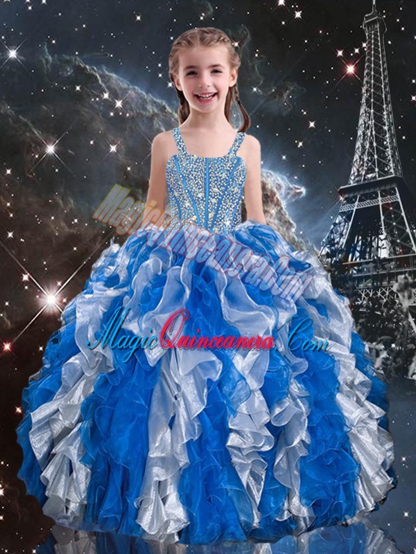 Admirable Blue Sleeveless Organza Lace Up Pageant Dress for Teens for Quinceanera and Wedding Party