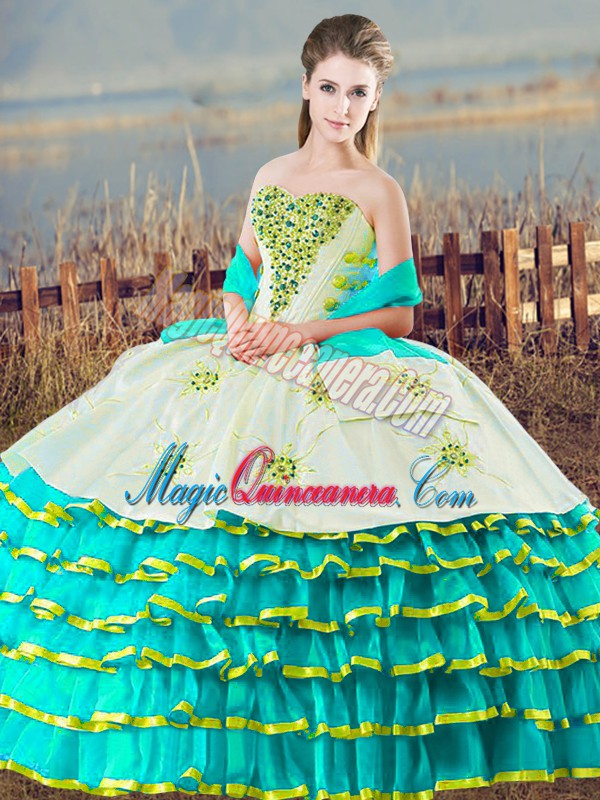 Admirable Floor Length Ball Gowns Sleeveless Aqua Blue Quince Ball Gowns Lace Up