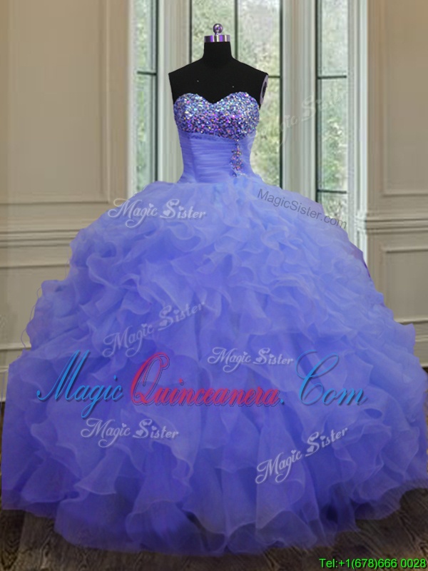 , Admirable Floor Length Purple Quince Ball Gowns Sweetheart Sleeveless Lace Up