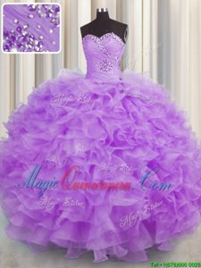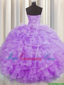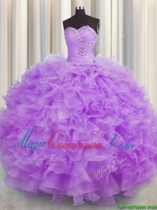 Admirable Lavender Lace Up 15th Birthday Dress Beading and Ruffles Sleeveless Floor Length