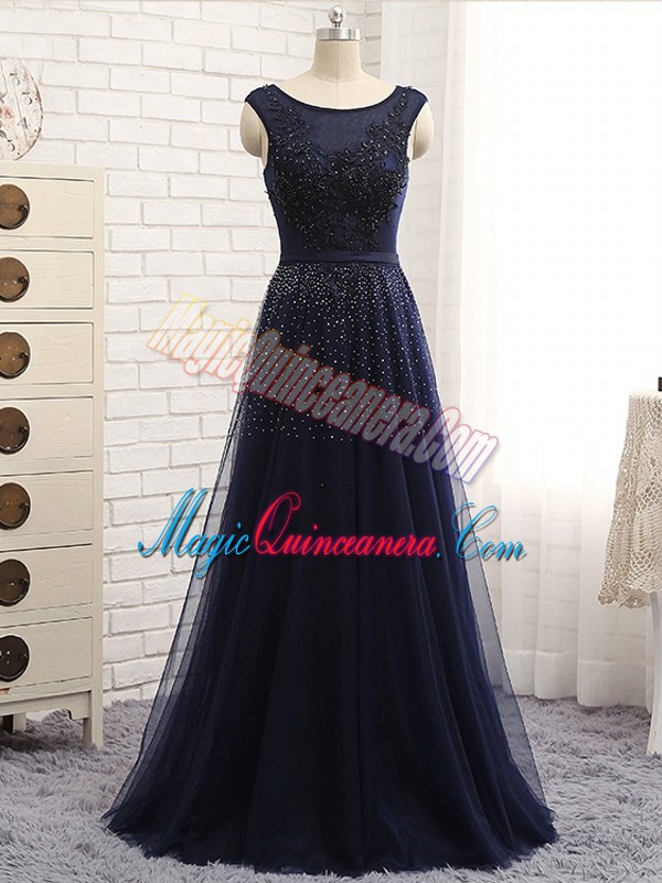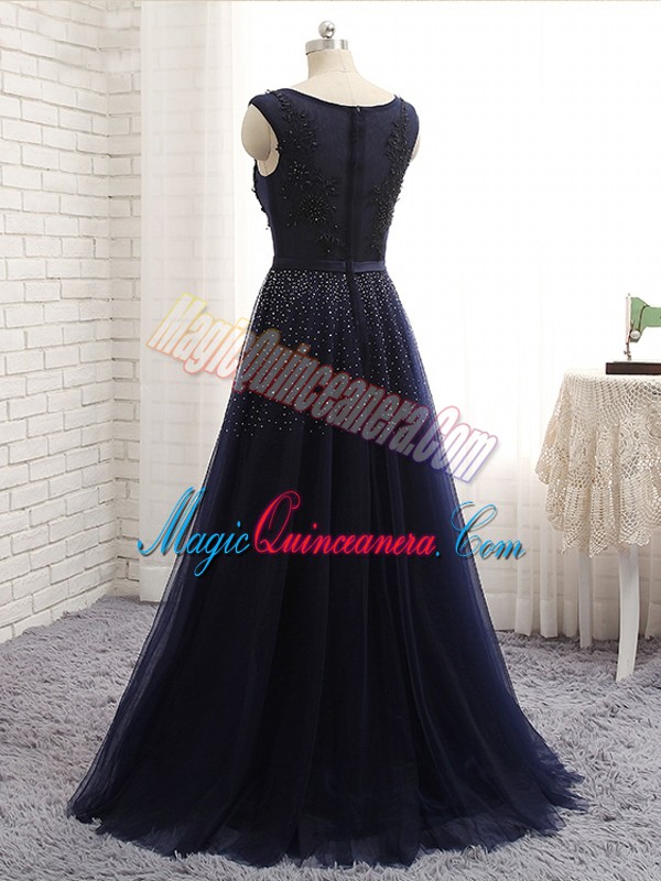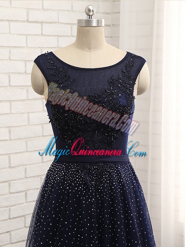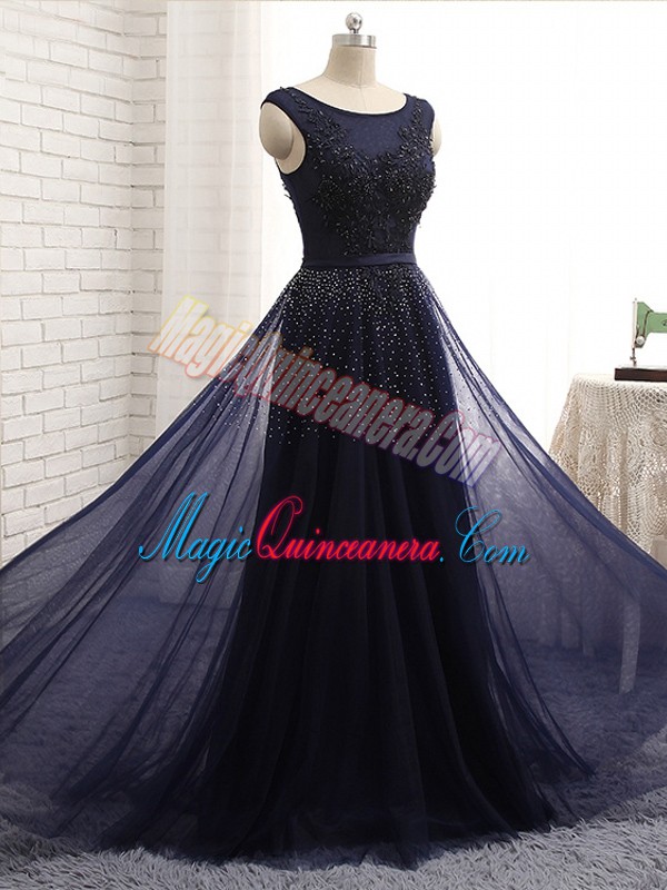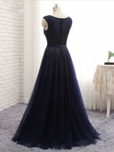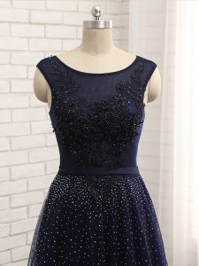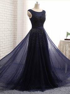 Admirable Navy Blue Scoop Neckline Beading Mother Of The Bride Dress Sleeveless Zipper