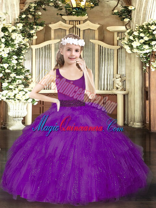 , Admirable Purple Tulle Zipper Scoop Sleeveless Floor Length Pageant Gowns Beading