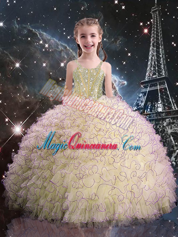 Admirable Sleeveless Beading and Ruffles Lace Up Pageant Dress Womens