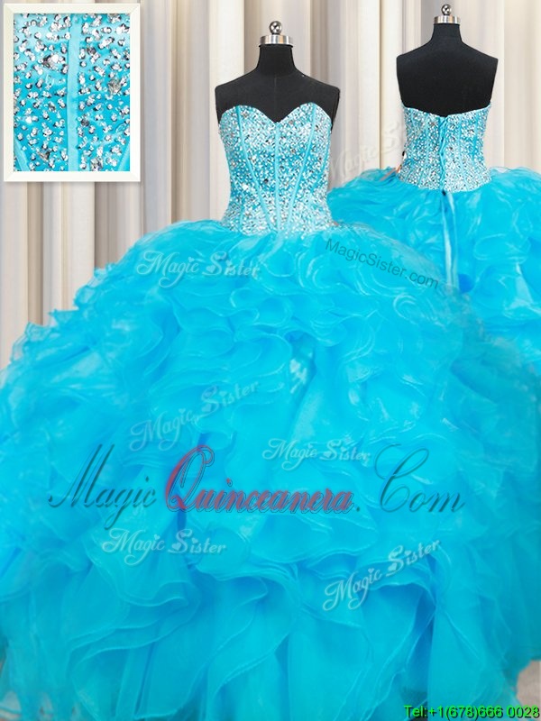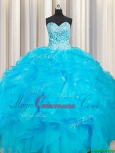 Admirable Sweetheart Sleeveless Quinceanera Gown Floor Length Beading and Ruffles Baby Blue Organza