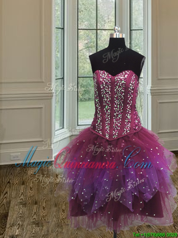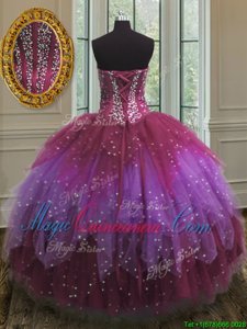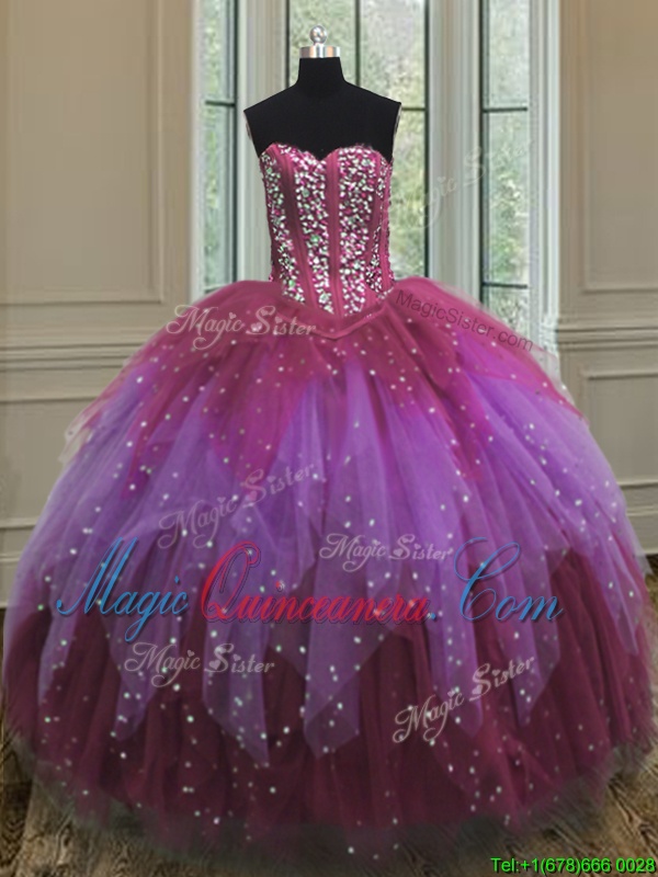 Admirable Three Piece Sleeveless Lace Up Floor Length Beading and Ruffles and Sequins 15th Birthday Dress