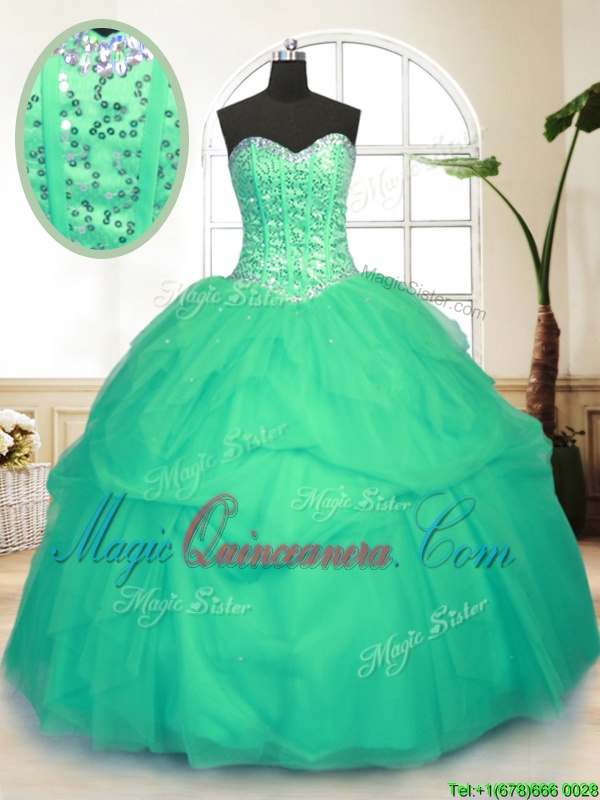 Admirable Tulle Sweetheart Sleeveless Lace Up Sequins and Pick Ups Quinceanera Dresses in Green